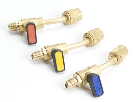 Set of 3 Brass Ball Valves - 1/4" male flare to 1/4" female swivel with core depressor