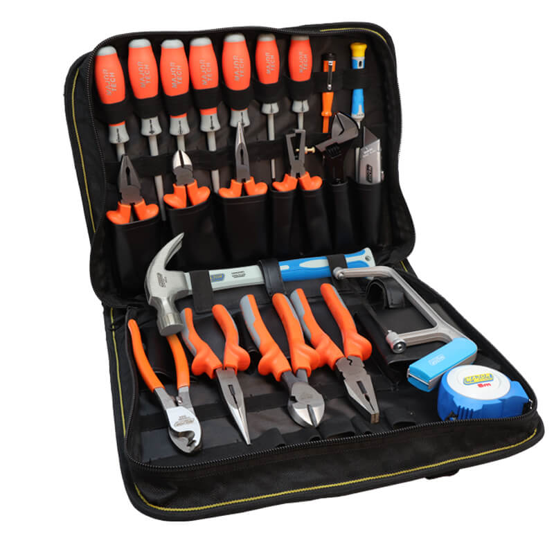 The Major Tech Electricians Tool Kit is a comprehensive solution for electrical professionals. It includes a range of 1000V insulated tools that have been individually tested to 10,000V, ensuring your safety while working with live electrical systems. From pliers to cable shears, screwdrivers, and more, this kit provides all the essential tools for various tasks.